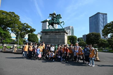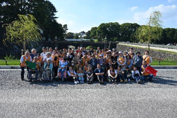 72名の参加で一路八景島に向かいました。到着してから、園内入口付近で集合写真を撮りました。